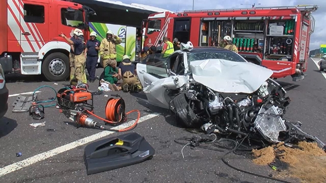 Otoyolun Ankara istikametinde iki otomobil ile bir yolcu otobüsünün karıştığı zincirleme trafik kazasının ardından olay yerine çok sayıda itfaiye ve sağlık ekibi gönderildi.