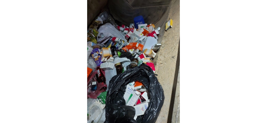 Lefkoşa’da dün akşam belediyenin temizlik ekiplerince çöp konteyneri içinde bulunan kapağı kesilmiş ilaçlar polise teslim edildi.