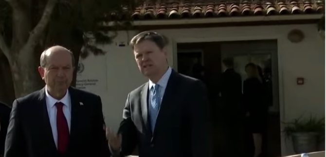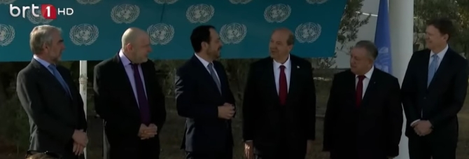 Toplantı için Ofis binası önünde bekleyen BM Genel Sekreteri’nin Kıbrıs Özel Temsilcisi ve Kıbrıs’taki Birleşmiş Milletler Barış Gücü (UNFICYP) Misyon Şefi Colin Stewart ve diğer BM yetkilileri önce merkeze ilk gelen Tatar’ı, ardından da Hristodulidis’i karşıladı.