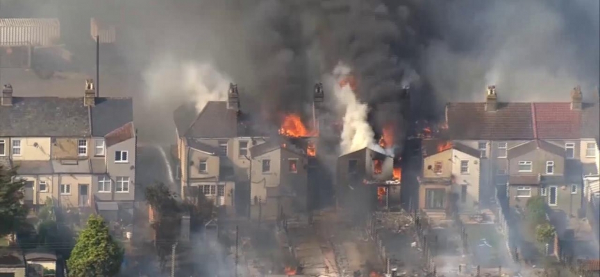 Londra'nın doğusunda yangının yerleşim alanına sıçramasının ardından çok sayıda evin tahrip olduğu açıklandı.