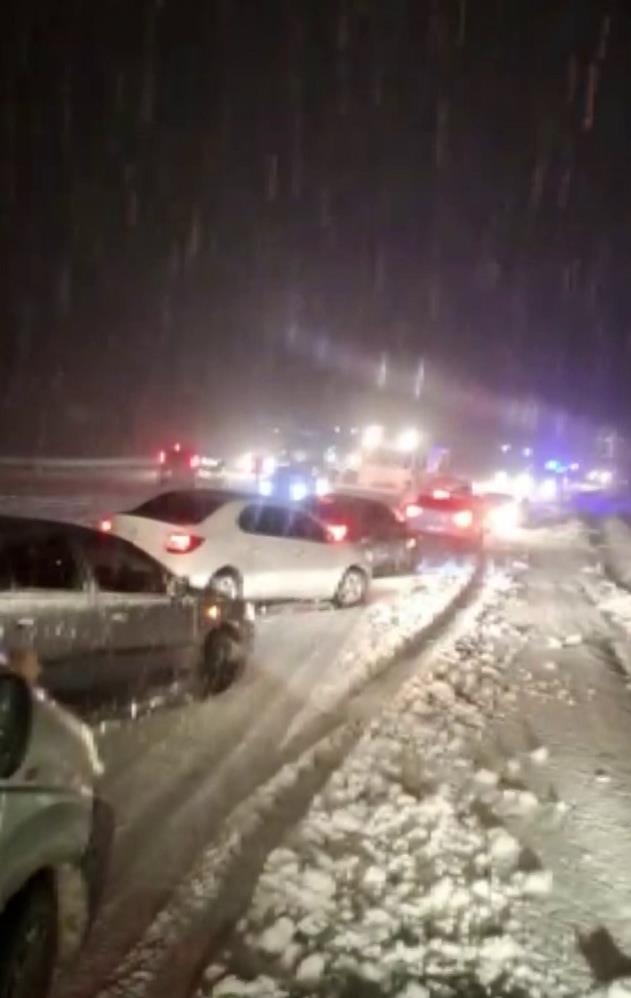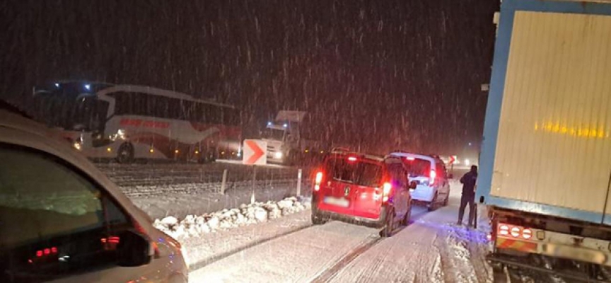 Tırların makas attığı geçitte Kayseri istikameti kısmen trafiğe kapandı. Ekipler yolu trafiğe açabilmek için kar küreme çalışmalarına başladı.