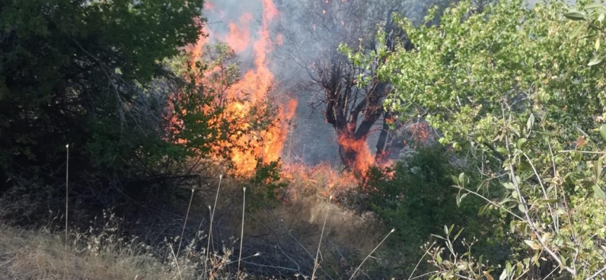 Yalınca Mahallesi'ndeki meşelik alanda henüz belirlenemeyen nedenle yangın çıktı.