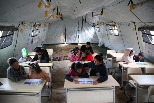 Çocukları depremin etkisinden uzaklaştırmaya çalıştıklarını vurgulayan Çolak, "Onlara iyi gelecek her şeyi elimizden geldiğince yapıyoruz. Çocuklarla kitap okuyoruz, sohbet ediyoruz, ders yapıyoruz tabii oyunlar da oynuyoruz. Onları sıkmak istemiyoruz" dedi.