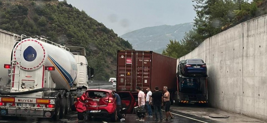 Tırın arkasından gelen 6 araç ise birbirine çarptı.