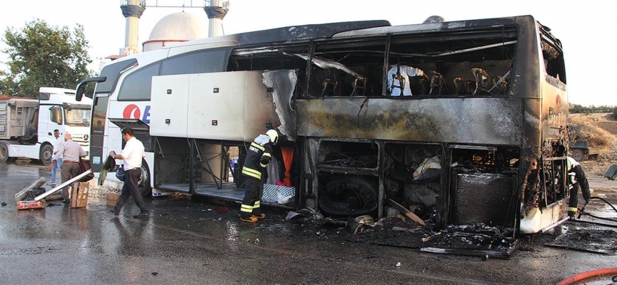 İtfaiye ekiplerince söndürülen yangında otobüs kullanılamaz hale geldi.