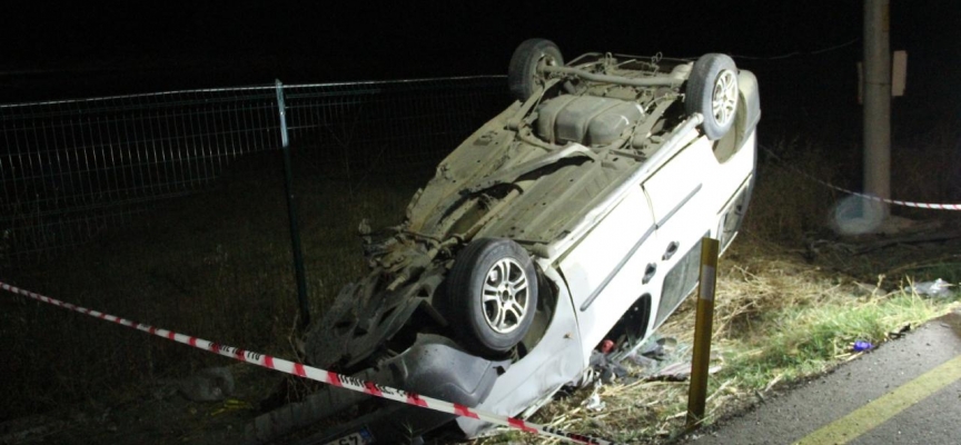 Çarpışmanın etkisiyle hafif ticari araç şarampole devrildi.