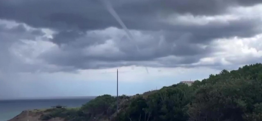 Marmara denizinde Adalar civarında çıkan hortum sahilden görüntülendi.