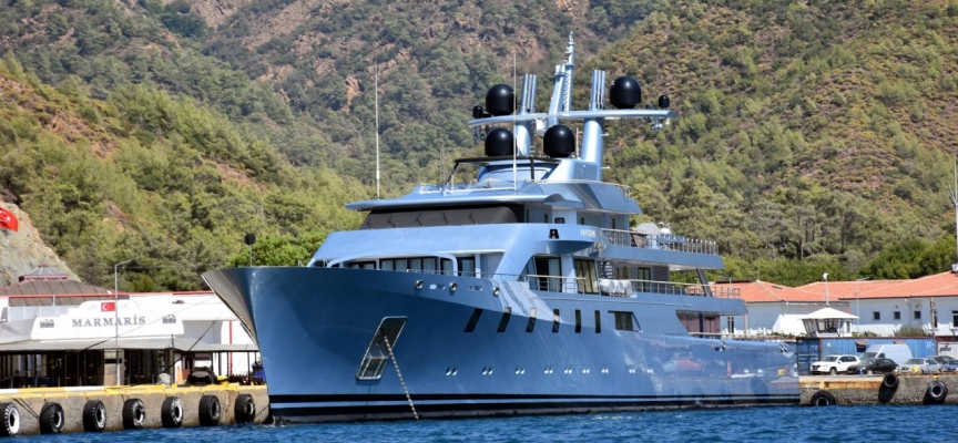 Yaz sezonun son aylarının yaşandığı ilçeye, Cayman Adaları bayraklı 110 metre uzunluğunda, 18 metre genişliğindeki "Anna" isimli dev yat geldi.