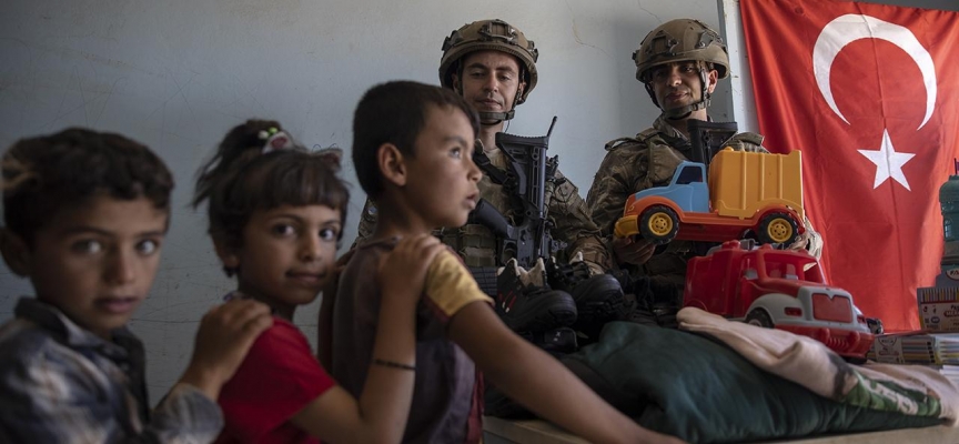 Suriye'de terör örgütünden temizlenen bölgelerde güvenli ortamı sağlayan TSK, aynı zamanda eğitim, sağlık ve temel gıda malzemeleri gibi birçok konuda yardım çalışmaları yapıyor.