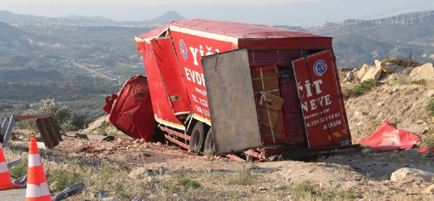 Mersin'de Mut-Karaman karayolunun 5. kilometresinde Mehmet T. idaresindeki evden eve eşya taşımacılık yapan kamyon virajda yoldan çıkarak şarampole savruldu.