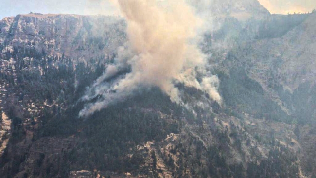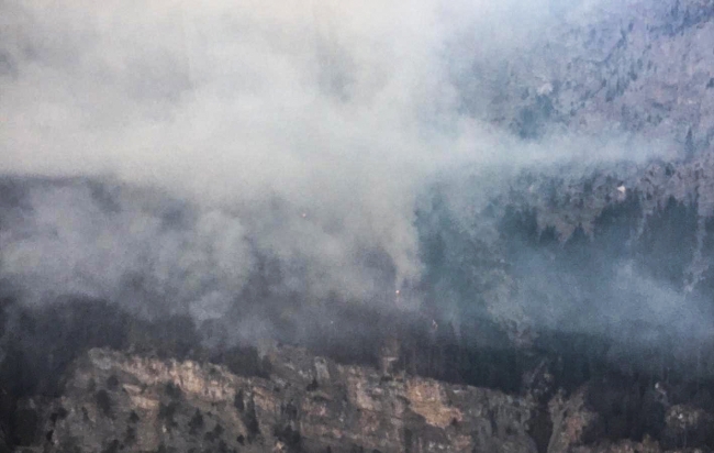 Dün akşam havanın kararmasıyla ara verilen havadan müdahaleye, bugün de zorlu arazi koşullarının oluşturduğu risk nedeniyle devam edilemiyor. Ekiplerin, yangını söndürme çalışmaları karadan sürüyor.