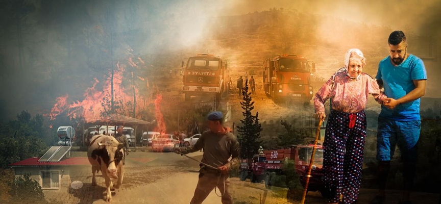 Yangının yerleşim yerlerini tehdit etmesi nedeniyle komandolar, köylüleri ve hayvanlarını tahliye etti.
