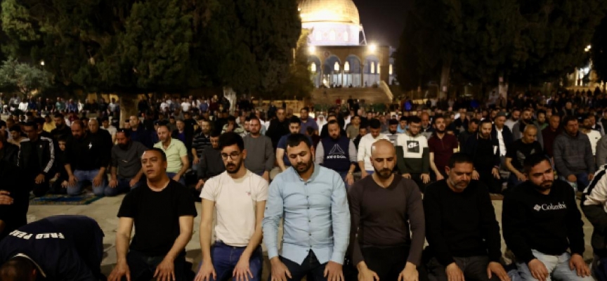 Mescid-i Aksa'da dün yapılan hilal gözleminin ardından perşembe gününün ramazanın ilk günü olacağının açıklanması üzerine her yaştan binlerce Müslüman ilk teravih namazı için Mescid-i Aksa'ya geldi.