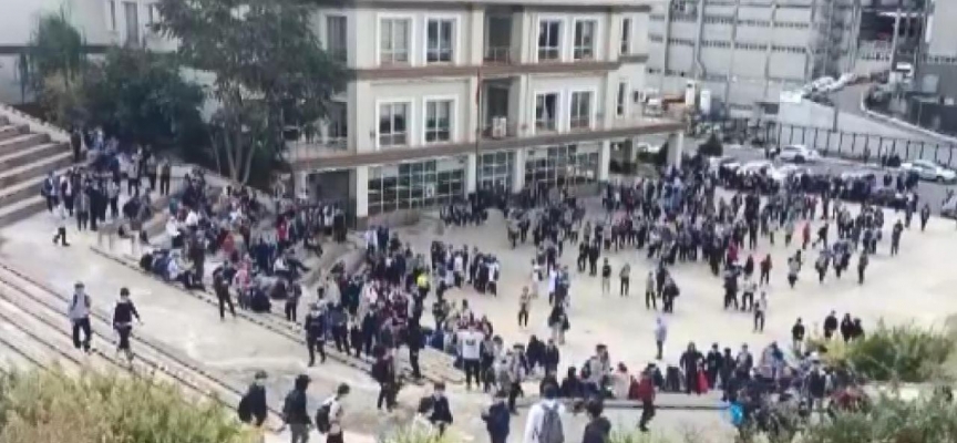Yangın çıkan bölümden dumanlar yükseldi, öğrenciler öğretmenler tarafından tahliye edildi.