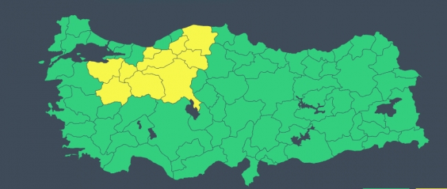 Meteoroloji Genel Müdürlüğü, Ankara, Bilecik, Bolu, Bursa, Çankırı, Düzce, Eskişehir, Karabük, Kastamonu ve Kütahya'yı sarı kodla uyardı.