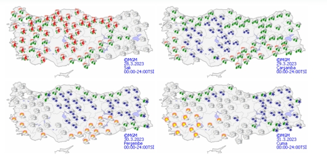 Yağışların Malatya ile Kahramanmaraş'ın kuzeyinde akşam saatlerinden sonra soğumayla karla karışık yağmur ve kar yağışına döneceği tahmin ediliyor.
