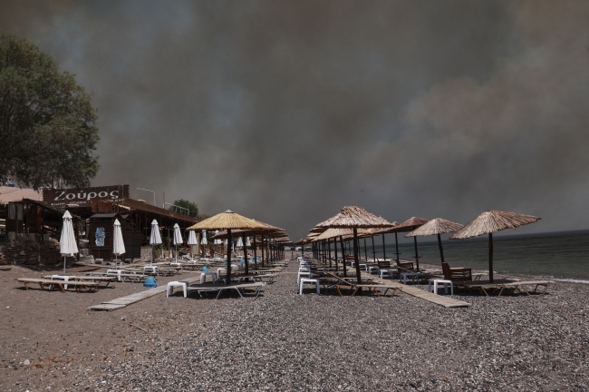Havadan ve karadan devam eden söndürme çalışmalarına Yunan Silahlı Kuvvetleri de destek verdi. Bölgedeki otel ve evlerde kalan 450 kişi tahliye edildi.