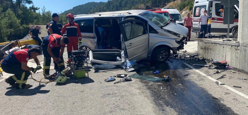 Çetin Gökçe'nin kullandığı plakası henüz öğrenilemeyen minibüs, Muğla-Denizli kara yolu Yörükoğlu mevkiinde beton bariyerlere çarptı.