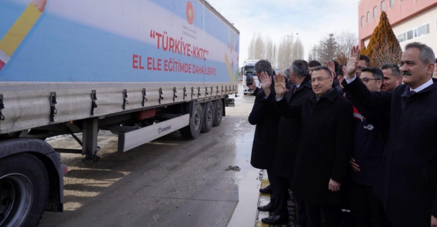 Eğitim materyallerini uğurlama töreninde konuşan Türkiye Cumhurbaşkanı Yardımcısı Fuat Oktay, her alanda Kıbrıs Türkü’nün yanında olduklarını ve olmaya devam edeceklerini vurguladı.