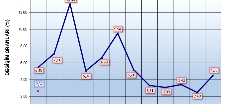 Ana harcama grupları itibarı ile bir önceki aya göre en yüksek artış yüzde 12.19 ile Çeşitli Mal ve Hizmetler ana grubunda gerçekleşti.