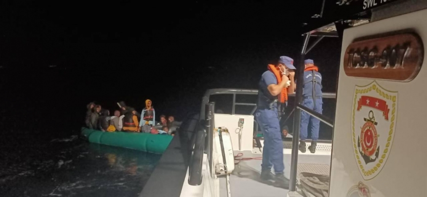Ekipler, Yunanistan unsurlarınca Türk kara sularına itilen 4 can salı içindeki 56 düzensiz göçmeni Sahil Güvenlik botuna alarak karaya çıkardı.