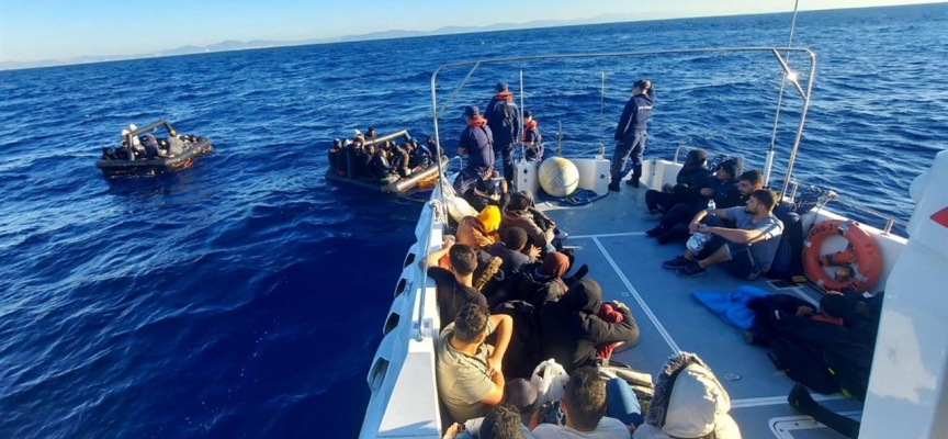Sahil Güvenlik Komutanlığından yapılan açıklamaya göre, Datça ilçesi açıklarında can sallarında düzensiz göçmenlerin bulunduğu bilgisi üzerine bölgeye Sahil Güvenlik botu yönlendirildi.