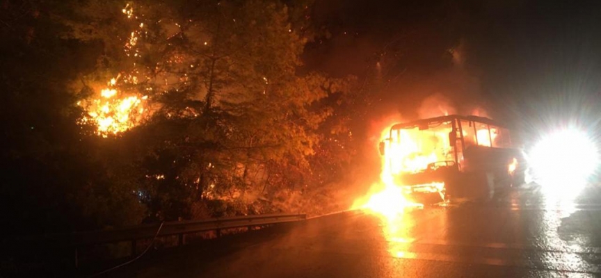 Ekiplerin müdahalesiyle otobüsteki ve ormanlık alandaki iki yangın söndürüldü.