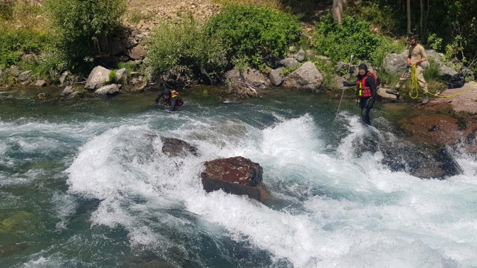 Müküs Köprüsü'nden Çetin Barajı ve Hidroelektrik Santrali (HES) bölgesine kadar yaklaşık 30 kilometrelik mesafede arama çalışmasını sürdüren ekipler, su altı ve üstü aramaların yanı sıra su altındaki ağaçlık ve kayalık alanları kontrol ediyor.