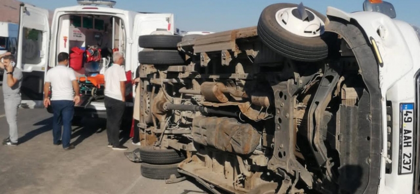 Hasköy ilçesinde, Sungu beldesindeki tekstil atölyesine işçi taşıyan sürücüsünün ismi henüz belirlenemeyen minibüs, Muş-Bitlis kara yolu havaalanı kavşağında devrildi.