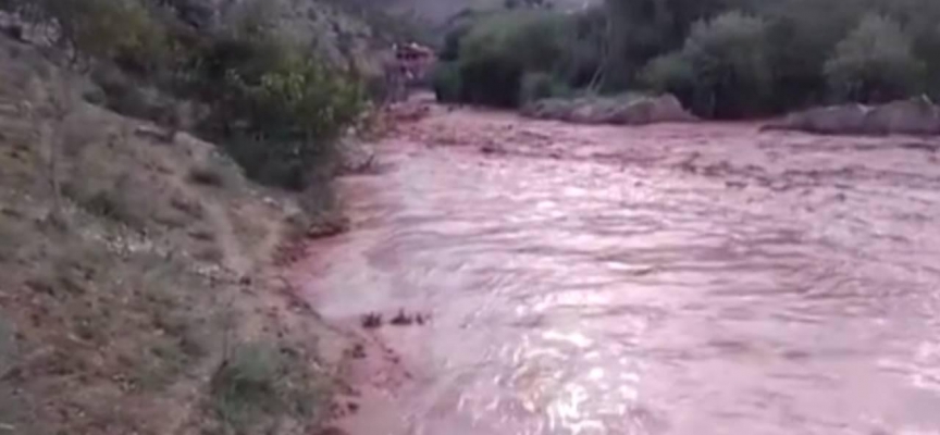 Jandarma ve Karayolları'na bağlı ekipler, sel nedeniyle kapanan yol üzerinde güvenlik önlemi aldı.
