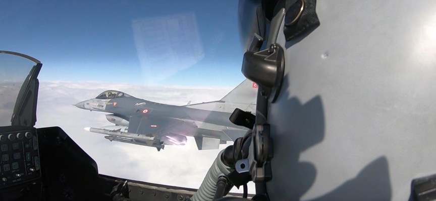 Mühimmatın F 16 savaş uçaklarına yüklenmesiyle kontroller tamamlanıyor. Ve Karadeniz hava sahasında bulanan dost uçağın emniyeti sağlanıyor.
