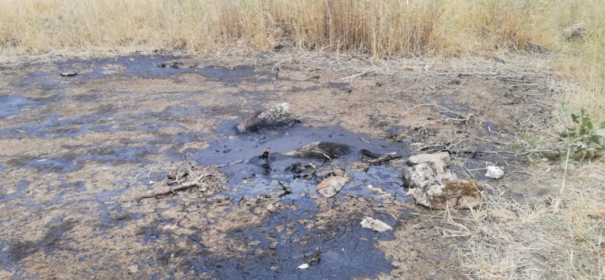 Kesiktaş köyü yakınlarında hayvanlarını otlatan çoban, petrol atığı olan bir bataklığa saplanmış sırtlanı fark etti.