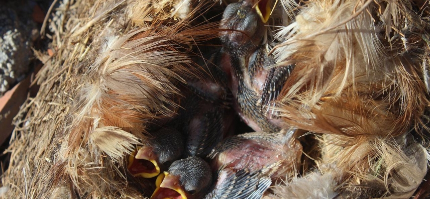 Gövdeli Mahallesi'ndeki Karadut İlkokulu'nun çatı yenileme çalışması yapılırken, çatıdaki yuvalarda kırlangıç yavruları fark edildi.