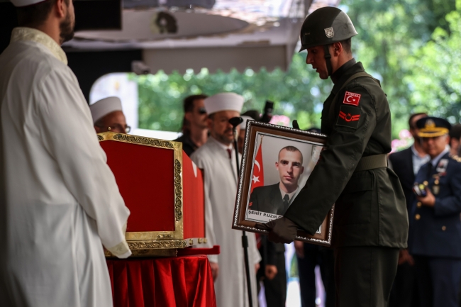 Şehit Piyade Uzman Çavuş Enes Özgül için Ataköy 5. Kısım Ömer Duruk Camisi'nde cenaze töreni düzenlendi. Şehidin camiye getirilen Türk bayrağına sarılı tabutunun önüne fotoğrafı konuldu.