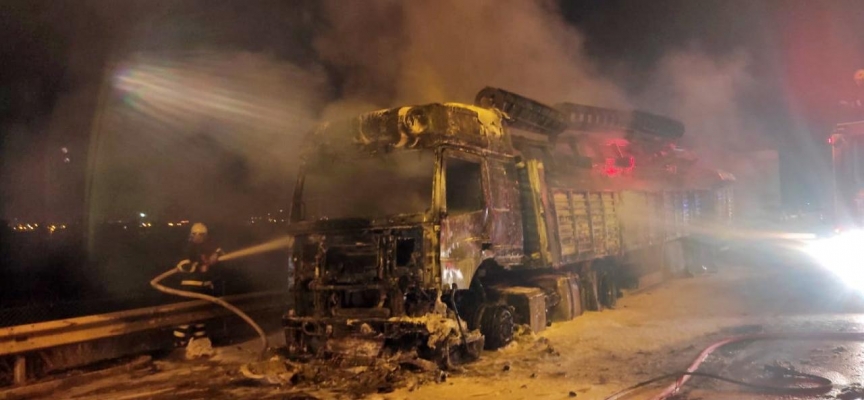Kısa sürede alevler tüm tırı sararken, olay yerine sevk edilen itfaiye ekipleri yangını 1 saatlik çalışma sonucu söndürdü.