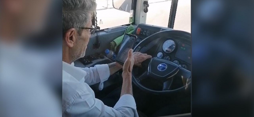 İETT 303B hattında, Marmara Cezaevi-Bayrampaşa Otogar seferini yapan otobüs şoförü, TEM Otoyolu Büyükçekmece mevkiinde seyrederken cep telefonuyla görüntülü konuştu.