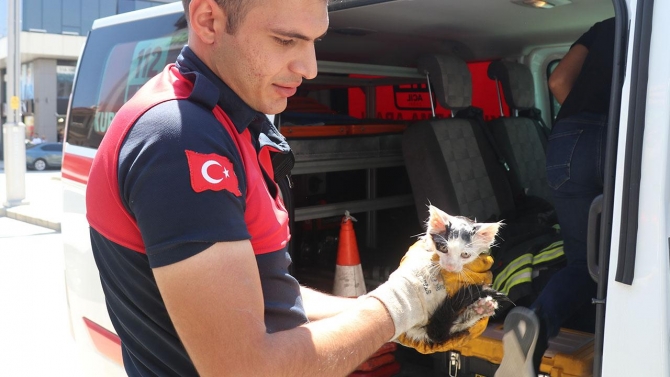 Ekiplerce sıkıştığı yerden çıkarılan kedi, buradan uzaklaştı. Kediyi yakalayıp su içiren itfaiye görevlileri, daha sonra sağlık kontrollerinin yapılması amacıyla hayvanı Veteriner İşleri Müdürlüğü'ne götürdü.