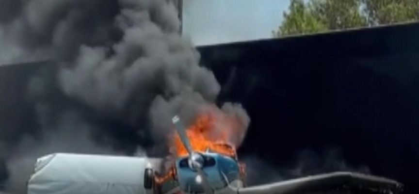 Uçakta bulunan pilot ve yolcunun yara almadan kurtulurken, itfaiye ekiplerinin müdahale ettiği yangın kısa süre içinde söndürüldü.
