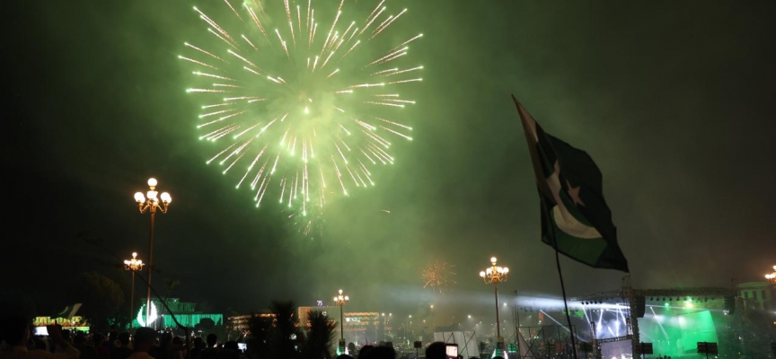 Ulusal basındaki haberlere göre, ülkenin kurucu lideri Muhammed Ali Cinnah tarafından 75 yıl önce ilan edilen bağımsızlığın yıl dönümünde, başkent İslamabad'da 31, 4 eyalet başkentinde ise 21 pare top atışı yapıldı.