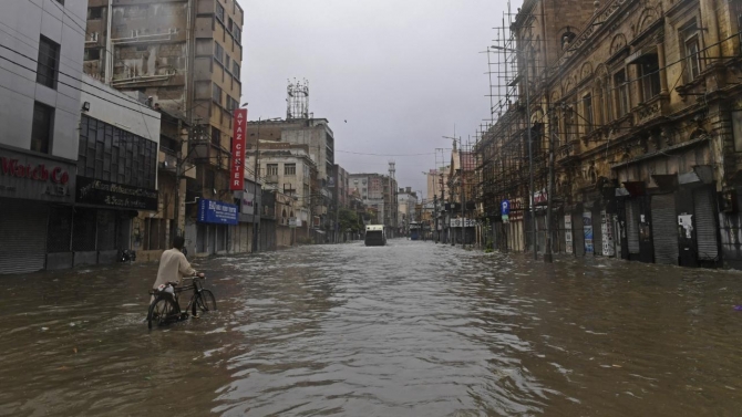 Muson yağmurlarından en çok etkilenen Karaçi'de acil durum ilan edildi. Şehrin birçok bölgesinde yağış sebebiyle sel baskınlar olurken yollar sular altında kaldı, ev ve iş yerlerini su bastı.