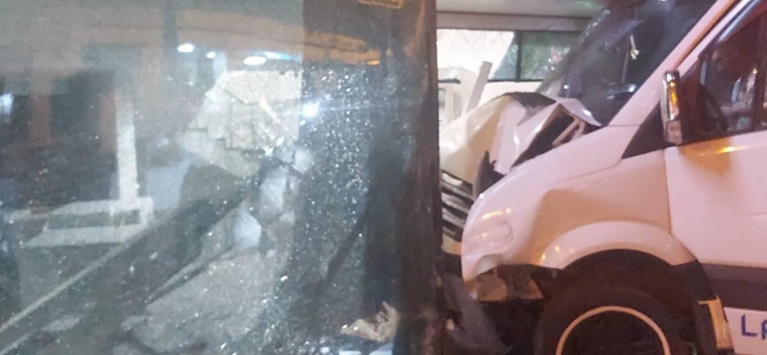 O esnada sürücüsünün direksiyon hakimiyetini kaybeden minibüs, kontrolden çıkarak önce refüje çarpmış ardından da cadde üzerindeki bankaya dalmıştı.