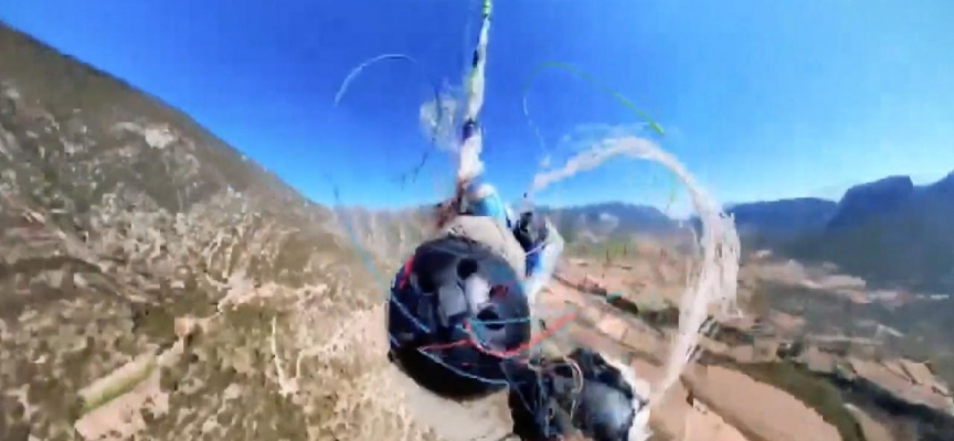 Yamaç paraşütü yapan İsviçreli Kevin Philipp'in şiddetli rüzgarın etkisiyle ipleri birbirine dolanan paraşütü açılmadı.