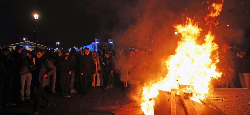 Hükümetin emeklilik yaşının 64'e yükseltilmesini içeren düzenlemeyi mecliste oylama yapılmadan devreye almak için adım atmasına tepki gösteren binlerce kişi, bu gece de başkent sokaklarındaydı.