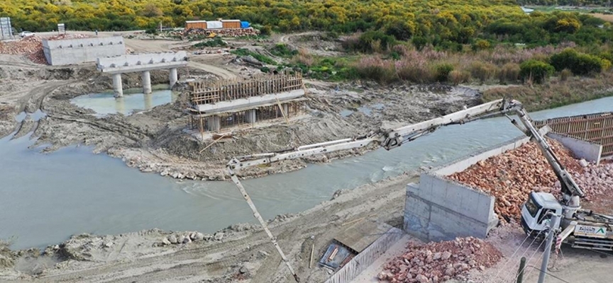 Köprüde inşaat çalışmaları son hızla devam ediyor. 110 metre uzunluğunda ve 17,5 metre genişliğindeki köprünün kenar ve orta ayakları tamamlandı, kirişler yerine konuldu. Köprü bağlantı yollarının istinat perde çalışmaları ise sürüyor.