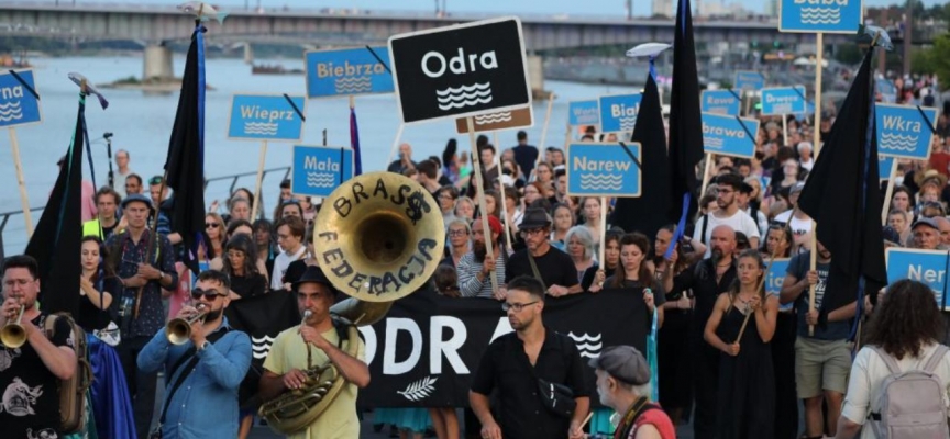 Varşova'da hafta sonu yüzlerce kişi, Vistül nehrinin geçtiği bulvarlarda toplandı. Protesto boyunca katılımcılar, Polonya nehirlerinin isimleri yazılı pankartlar ve siyah kurdeleler taşıdı.