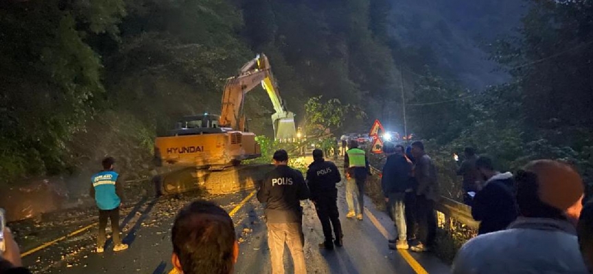 2 gündür yağan yağmurun etkisiyle oluşan heyelan nedeniyle yol çift yönlü olarak ulaşıma kapandı.