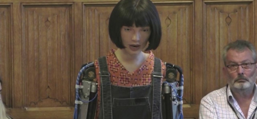 Bir kadın insansı yüzü ve açıkta kalan robotik kolları olan Ai-Da, Oxford Üniversitesi'ndeki bilim insanları tarafından üretildi ve adını İngiliz matematikçi ve bilgisayar öncüsü Ada Lovelace'den aldı.