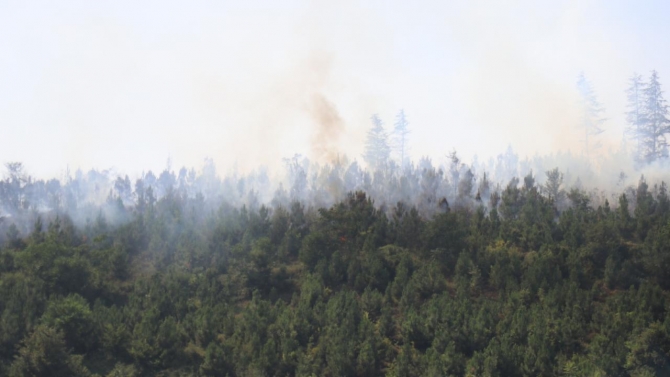 Ekipler, alevlerin daha fazla alana yayılmaması için yangını söndürmeye çalışıyor.