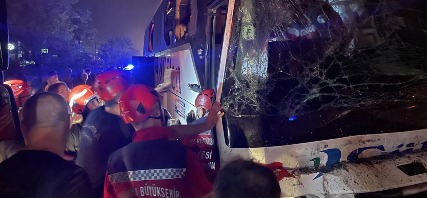 Kaza nedeniyle araçta sıkışan otobüs sürücüsü ile bazı yolcular, itfaiye ekiplerince çıkarılarak sağlık ekiplerine sevk edildi.