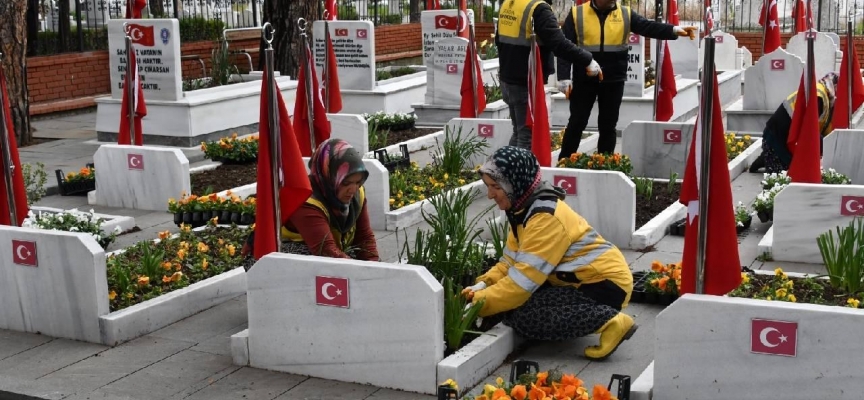Büyükşehir Belediyesinden yapılan yazılı açıklamaya göre, ketteki şehitliklerde bakım ve temizlik çalışması yapan Büyükşehir Belediyesi Park ve Bahçeler Dairesi Başkanlığı, mezarları çiçeklendirdi.